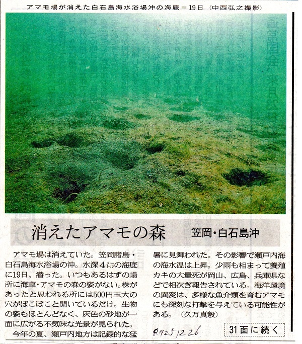 昨日の山陽新聞に「消えたアマモ場」の